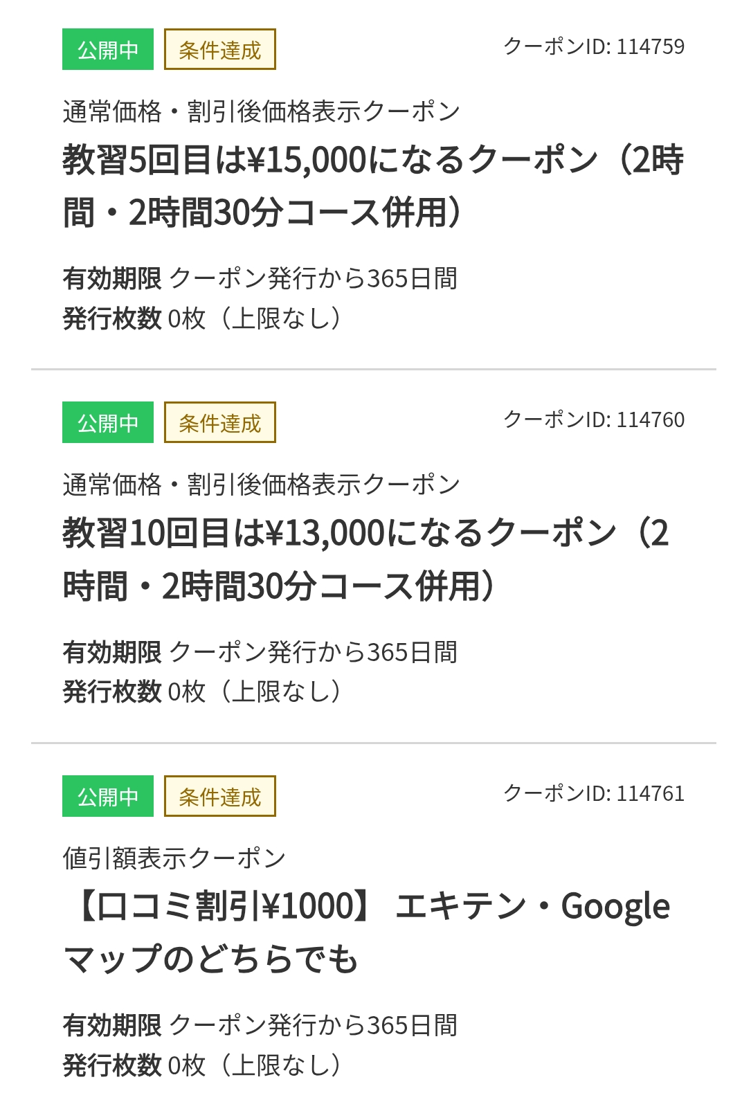 なお、エキテンご利用時に「条件に達しているのに使用できない」という場合、教習のお会計時に私クサカが対応させていただきます。